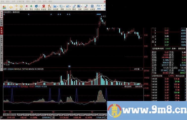 拉升资金:IF(VAR1F>0.015,VAR20,0)/45,colorred;