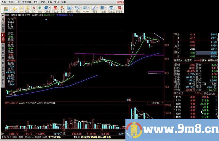 短期:100*(C-LLV(L,5))/(HHV(C,5)-LLV(L,5)),colorwhite; 中期:100*(C-LLV(L,10))/(HHV(C,10)-LLV(L,10)),coloryellow; 中长期:100*(C-LLV(L,20))/(HHV(C,20)-LLV(L,20)),colormagenta; 长期:100*(C-LLV(L,30))/(HHV(C,30)-LLV(L,30)),colorred,LINETHICK2;