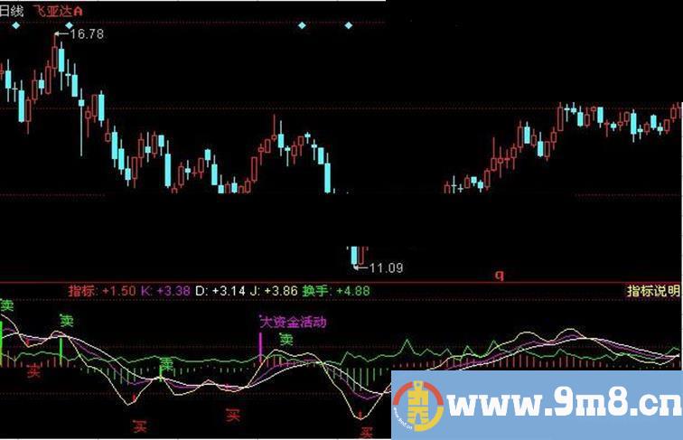 DRAWTEXT(Var11 AND COUNT(Var11,30)=1,15,'大资金活动'),linethick1,COLORff00ff;