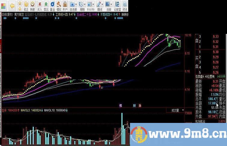 九九线:(MA(C,99)) * A1,colorblue;