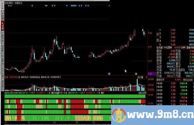 红灯停F15:C 黄灯观望F15:C>=F15B AND C<=F15A,coloryellow; STICKLINE(C>F15A,3.3,4,8,0),colorgreen,LINETHICK2; STICKLINE(C STICKLINE(C>=F15B AND C<=F15A,3.3,4,8,0),coloryellow,LINETHICK2; F30A:=MAX(MA(C,10),MA(C,20)); F30B:=MIN(MA(C,10),MA(C,20)); 绿灯行F30:C>F30A,colorgreen; 红灯停F30:C 黄灯观望F30:C>=F30B AND C<=F30A,coloryellow; STICKLINE(C>F30A,2.3,3,8,0),colorgreen,LINETHICK2; STICKLINE(C STICKLINE(C>=F30B AND C<=F30A,2.3,3,8,0),coloryellow,LINETHICK2; F60A:=MAX(MA(C,20),MA(C,28)); F60B:=MIN(MA(C,20),MA(C,28)); 绿灯行F60:C>F60A,colorgreen; 红灯停F60:C 黄灯观望F60:C>=F60B AND C<=F60A,coloryellow; STICKLINE(C>F60A,1.3,2,8,0),colorgreen,LINETHICK2; STICKLINE(C STICKLINE(C>=F60B AND C<=F60A,1.3,2,8,0),coloryellow,LINETHICK2; FRA:=MAX(MA(C,60),MA(C,120)); FRB:=MIN(MA(C,60),MA(C,120)); 绿灯行FR:C>FRA,colorgreen; 红灯停FR:C 黄灯观望FR:C>=F30B AND C<=F30A,coloryellow; STICKLINE(C>FRA,0,1,8,0),colorgreen,LINETHICK2; STICKLINE(C STICKLINE(C>=FRB AND C<=FRA,0,1,8,0),coloryellow,LINETHICK2; DPA:=MAX(MA(INDEXC,60),MA(INDEXC,120)); DPB:=MIN(MA(INDEXC,60),MA(INDEXC,120)); 绿灯行DP:INDEXC>DPA,colorgreen; 红灯停DP:INDEXC 黄灯观望DP:INDEXC>=DPB AND INDEXC<=DPA,coloryellow; STICKLINE(INDEXC>DPA,4.3,5,8,0),colorgreen,LINETHICK2; STICKLINE(INDEXC STICKLINE(INDEXC>=DPB AND INDEXC<=DPA,4.3,5,8,0),coloryellow,LINETHICK2;
