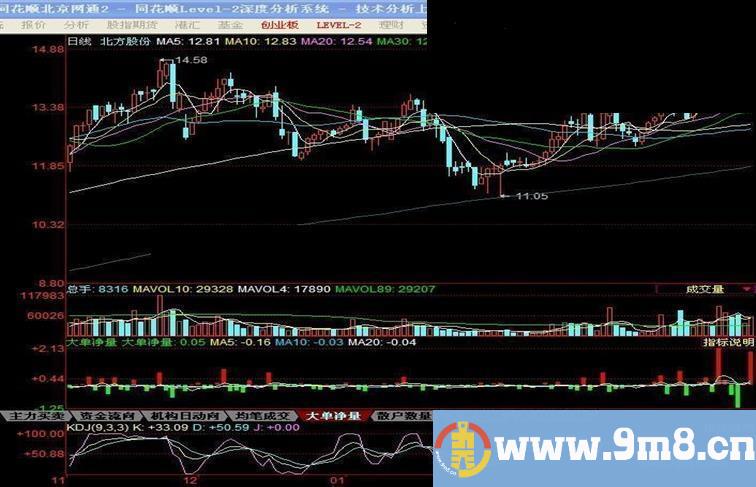 把年费3280元的同花顺一个指标——大单净量分享给股友们。