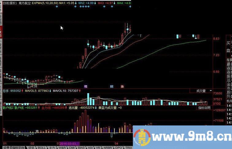 进出量:SUM(dt,n)+-SUM(kt,n),POINTDOT,COLOR00FFFF;