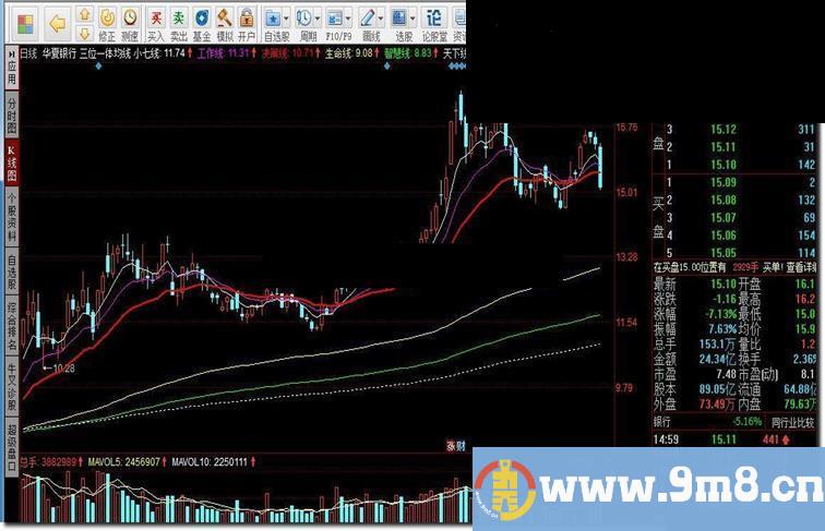 小七线:EMA(CLOSE,7 ),colorwhite; 工作线:EMA(CLOSE,14),colormagenta; 决策线:EMA(CLOSE,26),colorred,LINETHICK2; 生命线:EMA(CLOSE,144),coloryellow; 智慧线:EMA(CLOSE,250),colorgreen,linethick1; 天下线:EMA(CLOSE,380),colorwhite,linethick1;