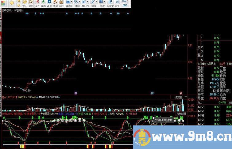 DRAWTEXT(CROSS(短线,长线)AND 长线<18 AND 长线>REF(长线,1)OR CROSS(长线,5),20,'千载难逢');