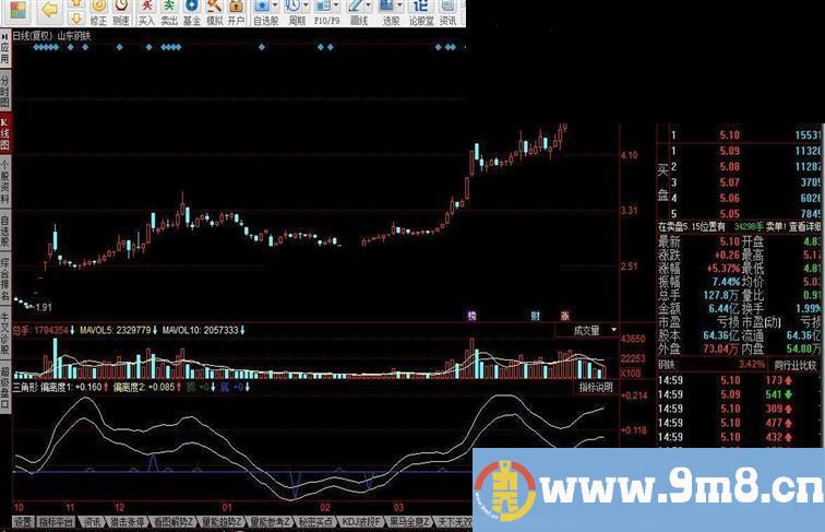 主要是使用了股价与均线的偏离,有点像boll线,可算是个扩展吧