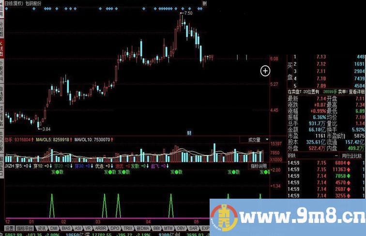 粘合:=(ZG/ZD-1)*100 高粘:=(ZG/ZD-1)*100 穿5:(粘合 AND CROSS(C,MA5))*0.5; 穿10:(粘合 AND CROSS(C,MA10))*1; 穿20:(粘合 AND CROSS(C,MA20))*2; 穿30:(粘合 AND CROSS(C,MA30))*3; FLSZ:=(C/REF(C,1)-1)*100>=2 AND V>REF(V,1); DXTP:=((穿5/0.5)+穿10+(穿20/2)+(穿30/3))>=2; 优选:(FLSZ AND DXTP AND MA30>REF(MA30,1))*3,COLOR00FFFF,LINETHICK2; 选优:(FLSZ AND DXTP AND MA30>REF(MA30,1) AND COUNT(高粘,20)>=15)*3,COLOR0000FF,LINETHICK2; JXDT:=MA5>MA10 AND MA10>MA20 AND MA20>MA30; 发散:(JXDT AND NOT(REF(JXDT,1)))*1,COLOR00FF00,LINETHICK2; 起飞:(NOT(粘合) AND REF(粘合,1) AND COUNT(粘合,20)>=15 AND DTPL)*3,COLORFF00FF,LINETHICK2; STICKLINE(粘合,-0.2,0,4,0),COLOR00FF00; STICKLINE(高粘,0.2,0,4,0),COLORFF00FF; DRAWTEXT(优选,3,'优●选'),COLOR00FFFF; DRAWTEXT(发散,2,'发●散'),COLOR00FF00; DRAWTEXT(起飞,3,'起●飞'),COLOR00FFFF; DRAWICON(选优,0.3,1); DRAWICON(起飞,3,1);