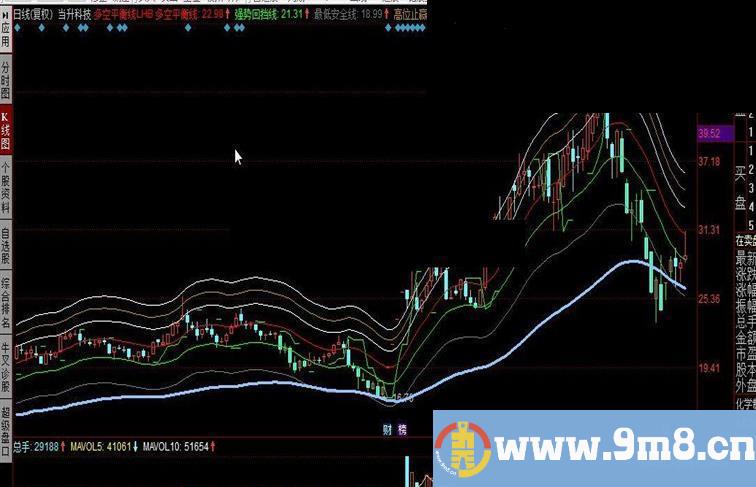 多空平衡线: EMA(EMA(EMA(HIGH,7.23379625),7.23379625),1),colorred,LINETHICK1;