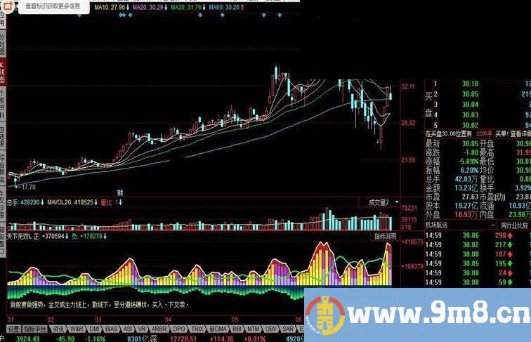 献给股民朋友们的大礼,这是一个令人心旷神怡的指标,不仅图形很直观,而且色彩很好看,用起来也很简单。看一下下面的说明就可以了。