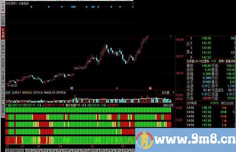 红灯停F15:C 黄灯观望F15:C>=F15B AND C<=F15A,coloryellow; STICKLINE(C>F15A,3.3,4,8,0),colorgreen,LINETHICK2; STICKLINE(C STICKLINE(C>=F15B AND C<=F15A,3.3,4,8,0),coloryellow,LINETHICK2; F30A:=MAX(MA(C,10),MA(C,20)); F30B:=MIN(MA(C,10),MA(C,20)); 绿灯行F30:C>F30A,colorgreen; 红灯停F30:C 黄灯观望F30:C>=F30B AND C<=F30A,coloryellow; STICKLINE(C>F30A,2.3,3,8,0),colorgreen,LINETHICK2; STICKLINE(C STICKLINE(C>=F30B AND C<=F30A,2.3,3,8,0),coloryellow,LINETHICK2; F60A:=MAX(MA(C,20),MA(C,28)); F60B:=MIN(MA(C,20),MA(C,28)); 绿灯行F60:C>F60A,colorgreen; 红灯停F60:C 黄灯观望F60:C>=F60B AND C<=F60A,coloryellow; STICKLINE(C>F60A,1.3,2,8,0),colorgreen,LINETHICK2; STICKLINE(C STICKLINE(C>=F60B AND C<=F60A,1.3,2,8,0),coloryellow,LINETHICK2; FRA:=MAX(MA(C,60),MA(C,120)); FRB:=MIN(MA(C,60),MA(C,120)); 绿灯行FR:C>FRA,colorgreen; 红灯停FR:C 黄灯观望FR:C>=F30B AND C<=F30A,coloryellow; STICKLINE(C>FRA,0,1,8,0),colorgreen,LINETHICK2; STICKLINE(C STICKLINE(C>=FRB AND C<=FRA,0,1,8,0),coloryellow,LINETHICK2; DPA:=MAX(MA(INDEXC,60),MA(INDEXC,120)); DPB:=MIN(MA(INDEXC,60),MA(INDEXC,120)); 绿灯行DP:INDEXC>DPA,colorgreen; 红灯停DP:INDEXC 黄灯观望DP:INDEXC>=DPB AND INDEXC<=DPA,coloryellow; STICKLINE(INDEXC>DPA,4.3,5,8,0),colorgreen,LINETHICK2; STICKLINE(INDEXC STICKLINE(INDEXC>=DPB AND INDEXC<=DPA,4.3,5,8,0),coloryellow,LINETHICK2;