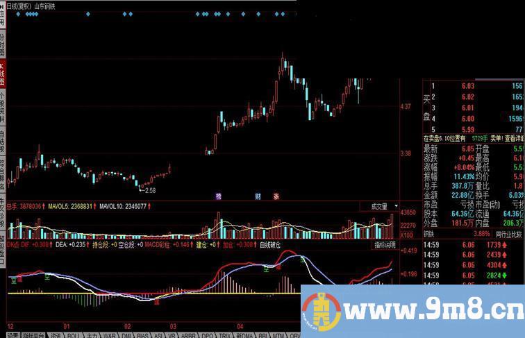 白线破仓:IF(DIF 趋势强弱:IF(DIF>DEA,DEA,DEA),COLORFF937F,LINETHICK2;
