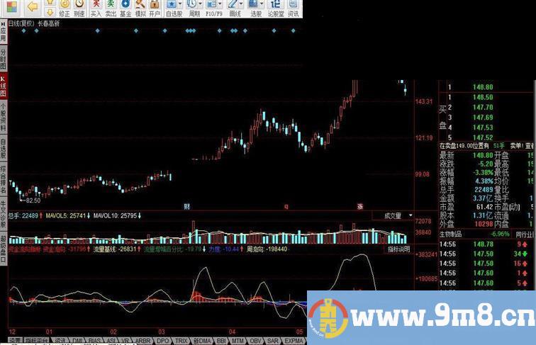XVL:=(IF(CLOSE>OPEN,QJJ*(HIGH-LOW),IF(CLOSE ZLL:=VOL/CAPITAL; HSL1:=IF(ZLL>10,10,ZLL); HSL:=(XVL/20)/1.15; 攻击流量:=((HSL*0.55+(REF(HSL,1)*0.33))+(REF(HSL,2)*0.22)); STICKLINE(HSL*0.4>=0,HSL*0.4*1.5,0,1,0),COLOR808080; STICKLINE(HSL*0.4<0,HSL*0.4*1.5,0,1,0),COLOR808080; GJJJ := EMA(攻击流量,8); LLJX:=EMA(攻击流量,3); 资金流向:LLJX,LINETHICK0,COLOR0000FF; STICKLINE(资金流向>0,资金流向,0,7,0),COLOR0000FF; STICKLINE(资金流向<0,资金流向,0,7,0),COLORFF0000; 流量基线:GJJJ,COLOR00FFFF; ZJLL:=REF(LLJX,1); QZJJ:=((LLJX-ZJLL)/ZJLL)*100; 流量增幅百分比:IF(LLJX>0 AND ZJLL<0,ABS(QZJJ),IF(LLJX<0 AND ZJLL<0 AND LLJX 力度:HSL/1000,LINETHICK0; 周流向:SUM(LLJX,5),LINETHICK1; BB:=REF(周流向,1); ZQZJJ:=((周流向-BB)/BB)*100; 周增幅百分比:IF(周流向>0 AND BB<0,ABS(ZQZJJ),IF(周流向<0 AND BB<0 AND 周流向 0,COLOR808080;