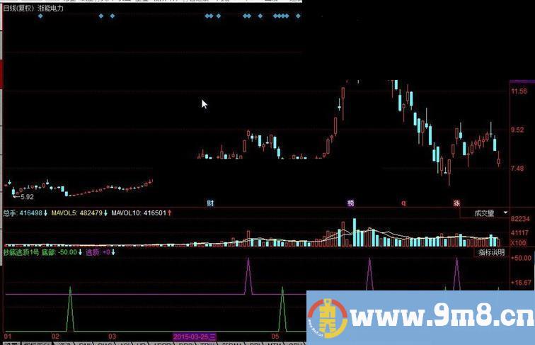 底部:IF((TROUGHBARS(3,15,1)=0) AND (HIGH>LOW+0.01),10,(-50)),Color00FF00;