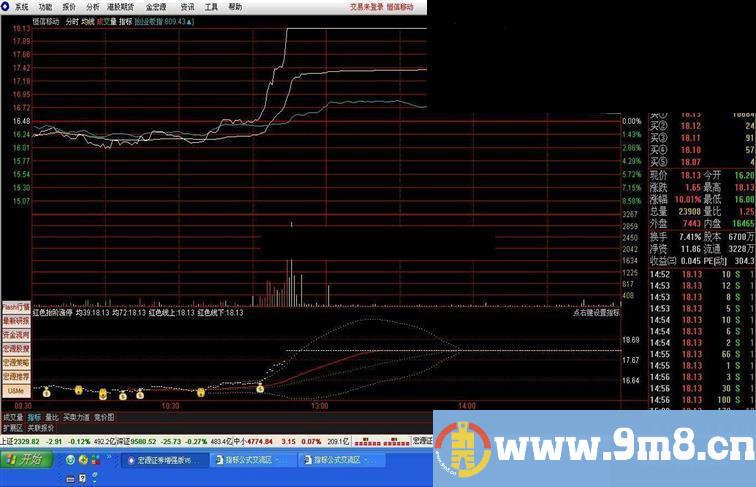 4 股价在大盘均价线之下,说明该股当日弱势,尽可能选股价在大盘均价线之上各股操作。