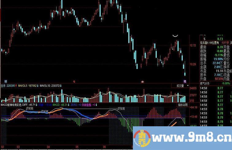 MACD:(DIFF-DEA)*2,COLORSTICK; Zero : 0; gj:=MAX(C,O); STICKLINE(MACD>0 AND MACD>=REF(MACD,1),0,MACD,2,0),color0000ff; STICKLINE(MACD>0 AND MACD