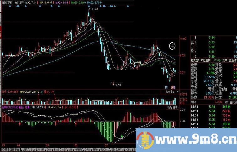 空:IF(2*(DIFF-DEA)<中心 AND 2*(DIFF-DEA)<0,2*(DIFF-DEA),DRAWNULL),colorgreen,LINETHICK2;