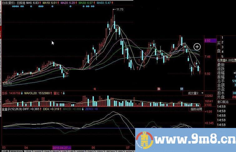 4.分析MACD柱状线,由红变绿(正变负),卖出信号参考;由绿变红,买入信号参考。