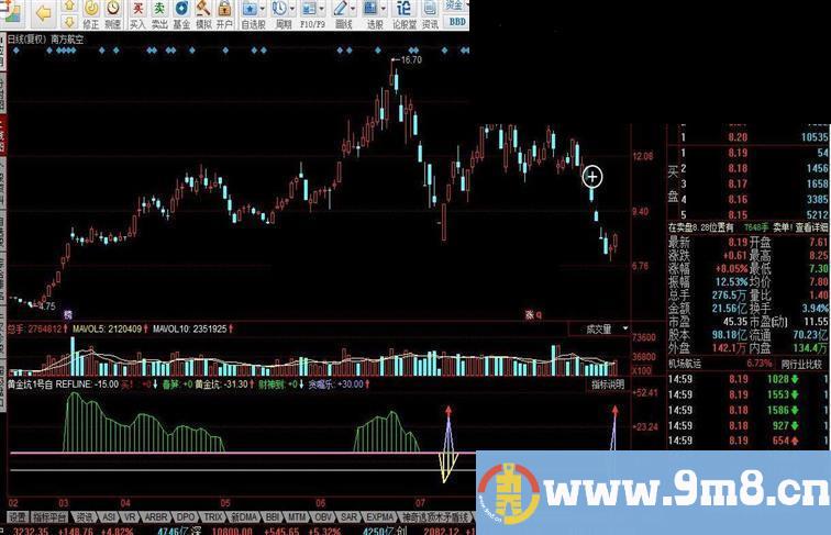 使用说明:红色箭头为黄金坑形成阶段,出现红色向上塔尖符号位买入信号,后势上涨概率较大。