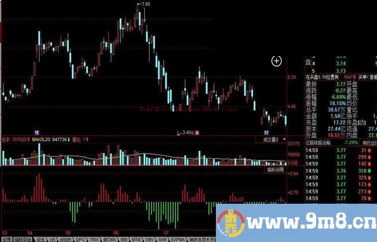 超短线一个不错的指标 源码: A:=MA(C,2);B:=MA(C,7);MD:=A-B;D:=DYNAINFO(3); STICKLINE(A>B,D,D+MD*2,3,0),colorred; STICKLINE(A