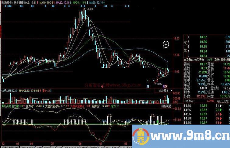 主力撤: IF(V4<=0,V4,0),colorgreen;