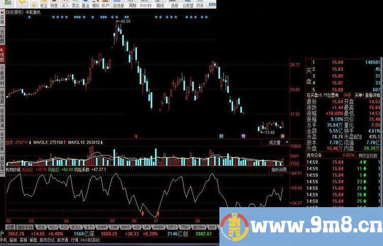 风险系数:0.5*相对强弱+0.5*短线波段,coloryellow;