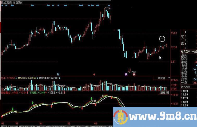 下降线:EMA(C,5),COLOR00FF00,LINETHICK2;