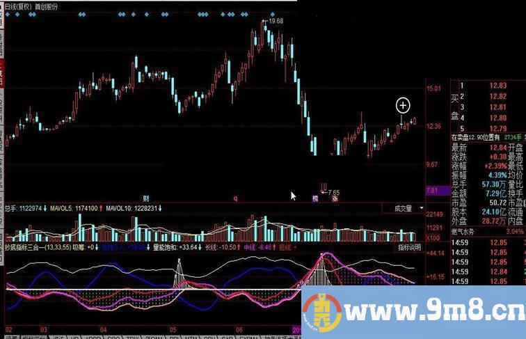 庄筹线:=EMA(J,6),COLORFF00FF,LINETHICK2;