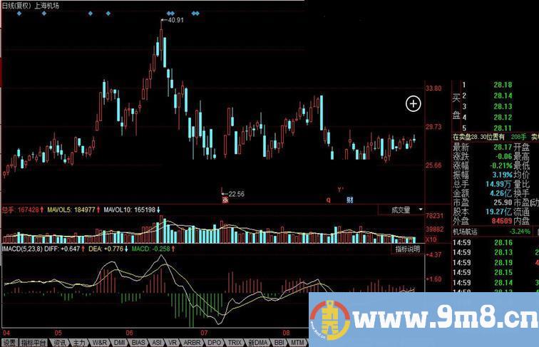 4.分析MACD柱状线,由红变绿(正变负),卖出信号参考;由绿变红,买入信号参考。