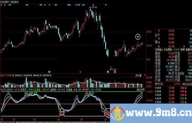 出准备: IF(CROSS(J2,J1) AND J2>85,70,100),LINETHICK2,COLOR00FF00;