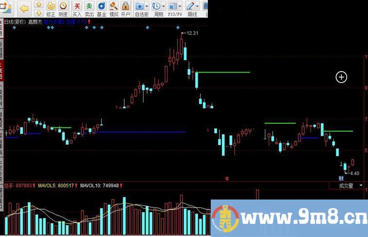 阻力:IF(B<0,REF(EMA(C,14),BARSLAST(CROSS(0,B))+1),DRAWNULL),colorgreen,LINETHICK2;