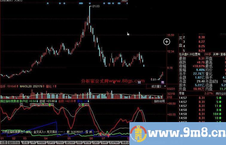 DRAWTEXT_FIX(1,0.01,0.82,0,'《撰庄指标》指标:金叉买入;死叉卖出提 供 ),coloryellow;