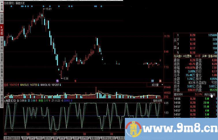 1.此为超短线波动指标; 2.请配合其他指标使用; 3.规避连阴K线及平均线从中间穿过大阴K线的情况; 4.请结合4日和5日指标线使用; 5.关于如何使用指标请自行参悟. 源码 k=IF(H-L=0,IF(C-REF(C,1)<=0,-4*C,4*C),IF(C-O>=0,L+H+2*O,-L-H-2*O)); 白:MA(k/C,2); 蓝:MA(白,2); 标准差=STD(蓝,2); 差值:蓝-标准差; Z1:4; Z2:-4; zero:0;