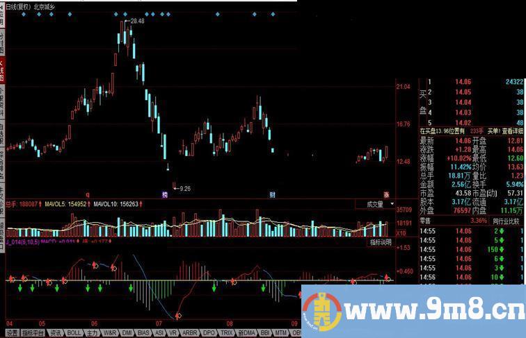 参数:LONG、SHORT、M 天数,计算MACD时用,一般26、12、9。