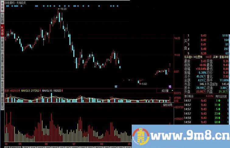 STICKLINE(DIF N:=9; M1:=3; M2:=3; RSV:=(CLOSE-LLV(LOW,N))/(HHV(HIGH,N)-LLV(LOW,N))*100; K:=SMA(RSV,M1,1); D:=SMA(K,M2,1); J:=3*K-2*D; STICKLINE(J>D,VOL/2,VOL,2,0),colorred; STICKLINE(J