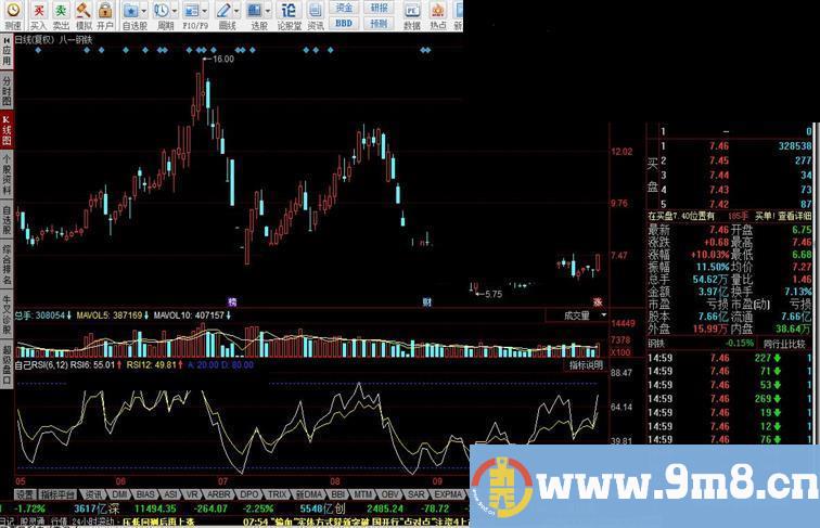 RSI$2:SMA(MAX(CLOSE-LC,0),N2,1)/SMA(ABS(CLOSE-LC),N2,1)*100;