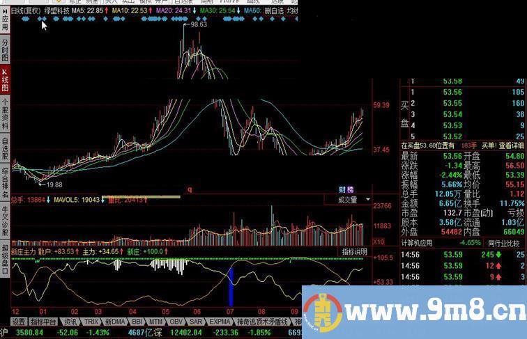 主力: MA(WINNER(CLOSE*0.95)*100,3)*VAR1,coloryellow;