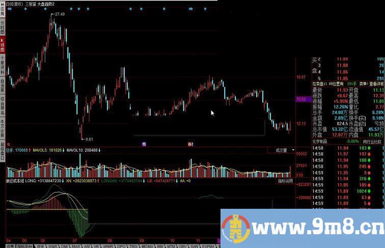 A2:=EMA(A1,5)*CLOSE; LONG:EMA(A2,20)-EMA(A2,50); XN:EMA(LONG,10); LONGXN:3*LONG-2*XN; LB:(LONG-XN)*3,COLORSTICK; AA:0;