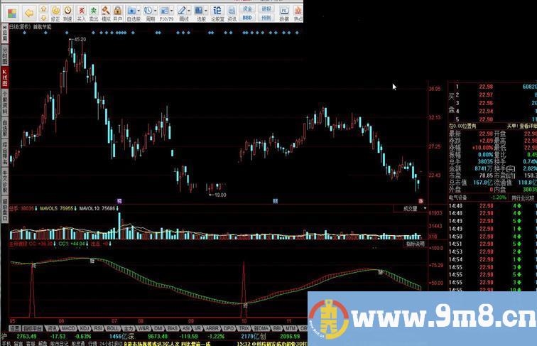 出击:IF((CROSS(CC,CC1) AND (CC1 < 顶) ),80,0),colorred;