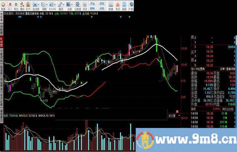 3、中轨上是强势去,做股票的主战场。中轨下是弱势去,一般不参与。