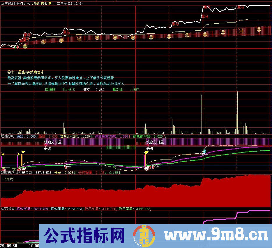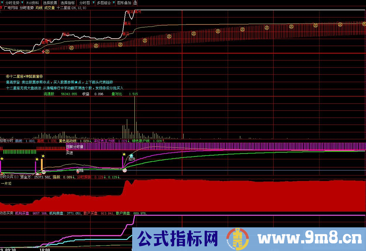 源码来自一个叫好象叫MACD论坛,中间用{}括起的是本人加上去的,加上去后就有柱线标记和星星了,贴图如下: