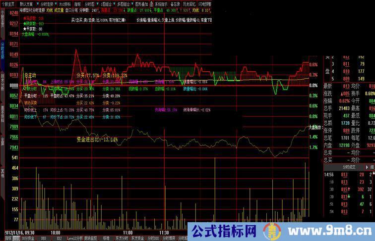 进出比例:=(总买入-总卖出)/(总买入+总卖出)*100;
