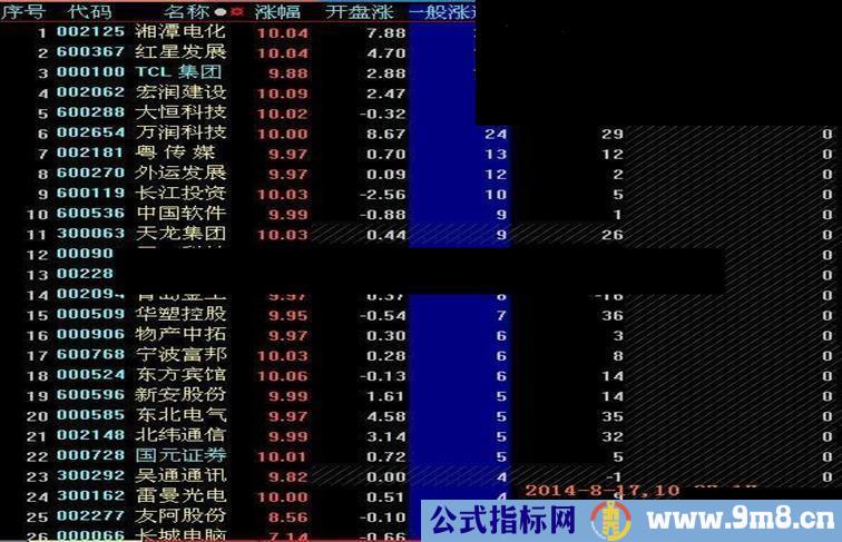 3. 此指标主要是用于抓强势涨停股,可在基于涨幅的排序基础上手动刷新,这样就能够在几秒的时间内获得排序值较大的排序结果,再据此抢入相关强势涨停股票。引用分时排序结果的股票池运行很慢,得出结果的时间很长,根本来不及操作,因此建议不将些分时指标用于股票池。