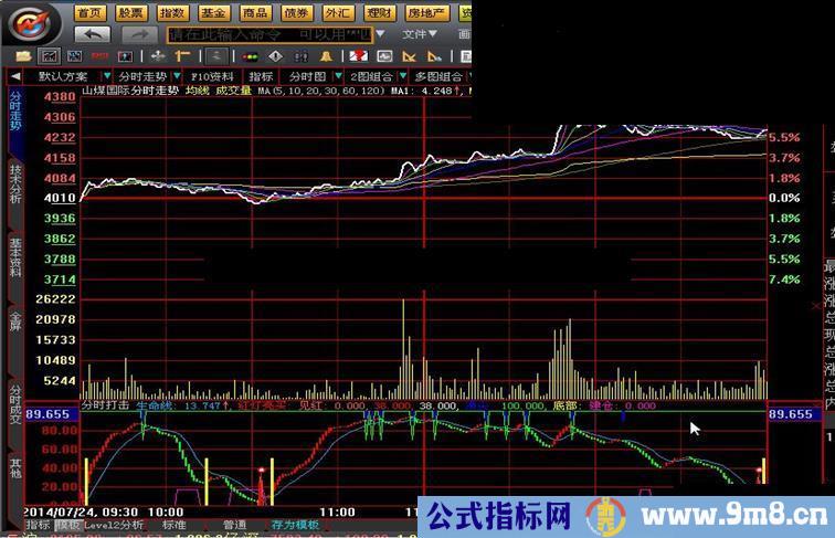 见红:IF(VarC>18,0,IF(CROSS(VarC,VarD) AND VarC>VarD AND VarC<18,37,0)),COLOR3355FF;{灯塔脉冲}