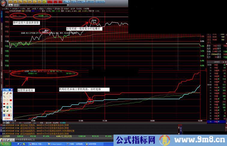 该公式一主图一副图,目前只有大智慧版,等本人有时间了改成通达信版。两公式配合使用,能准确扑捉分时起爆点,抓牛专用。如果你懂怎么写大智慧的分时预警,可以尝试将主图中的“突破”做成分时预警,这样所有牛股就尽在你眼底了。两公式均无密献出。
