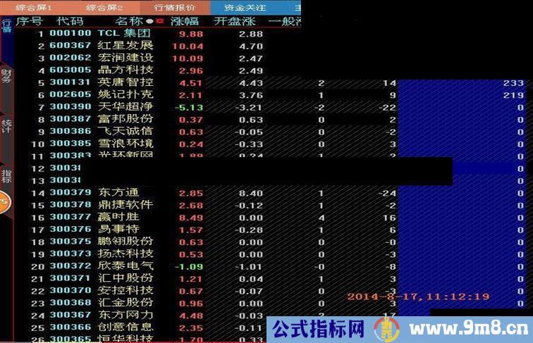 3. 此指标主要是用于抓强势涨停股,可在基于涨幅的排序基础上手动刷新,这样就能够在几秒的时间内获得排序值较大的排序结果,再据此抢入相关强势涨停股票。引用分时排序结果的股票池运行很慢,得出结果的时间很长,根本来不及操作,因此建议不将些分时指标用于股票池。