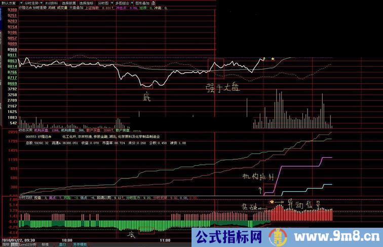 (1.红色柱代表买进强度,绿色柱代表卖出强度,黄色柱代表庄控股强度,蓝色柱代表洗盘。
