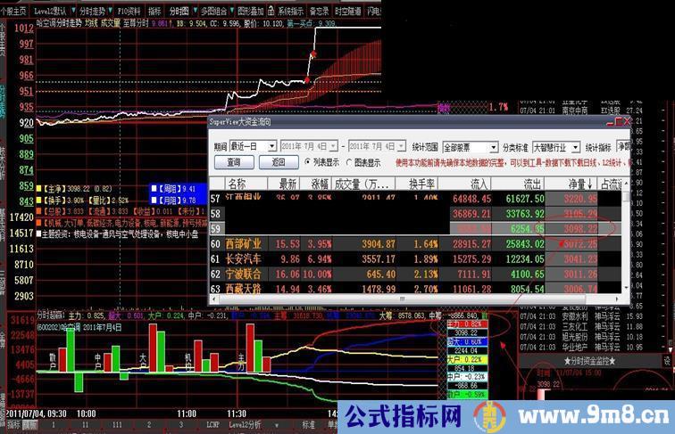 分时TOP柱状图源码如下(需在分时下切子窗口新建公式并将下面源码放入即可):