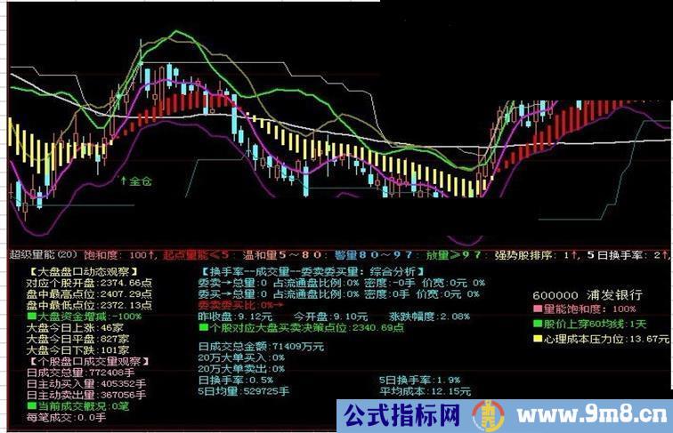 IF BARSTATUS=2 AND(饱和度) THEN BEGIN DRAWTEXTABS(550,60,'■量能饱和度:'+NUMTOSTRN(饱和度,0)+'%'),Color9368FF;END;