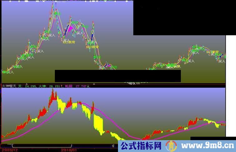在图中对长期股价最为敏感的就是红黄两色的波段了.大家可以注意到,不管当日的股价是涨是跌,只要趋势不变,它的显示就是一种颜色,或红或黄,这也就告诉我们现在是买还是观望了,不要贪一时便宜,反被诱多,也不要一时恐慌被洗盘出局.