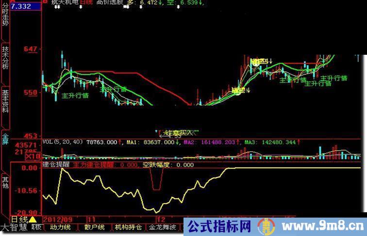 发一个副图 提示主力建仓的指标 黄线掉头向下为卖出信号